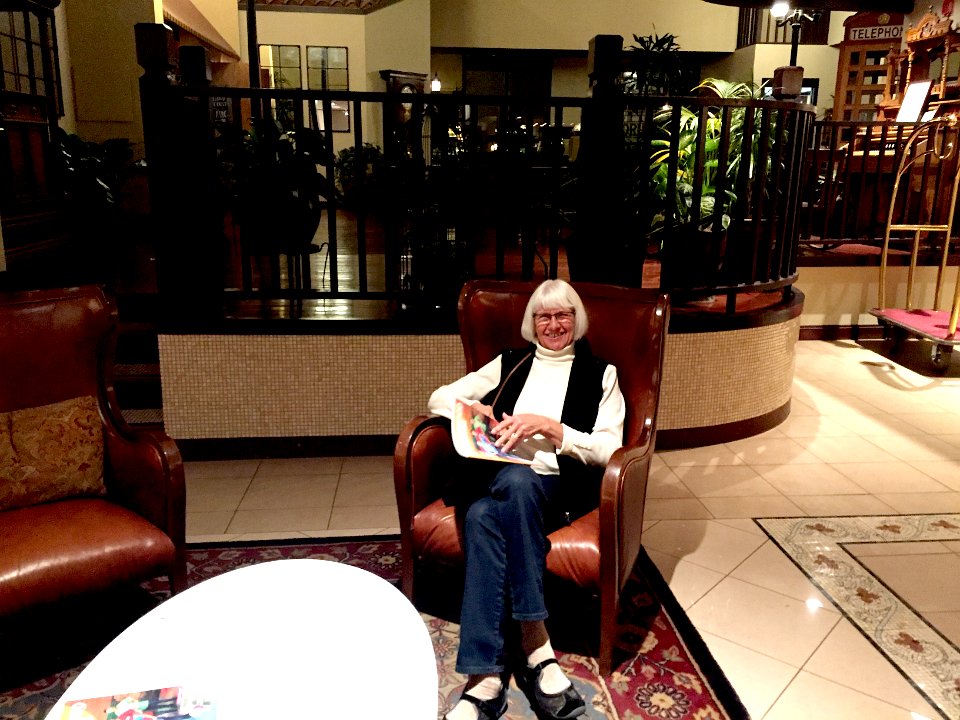 3Karen in the Lobby Karen in the lobby reviewing the options in Glenwood Springs for our 10 hr stay.