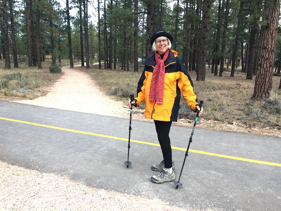 19Karen heading out Karen heading out for a hike on the rim.