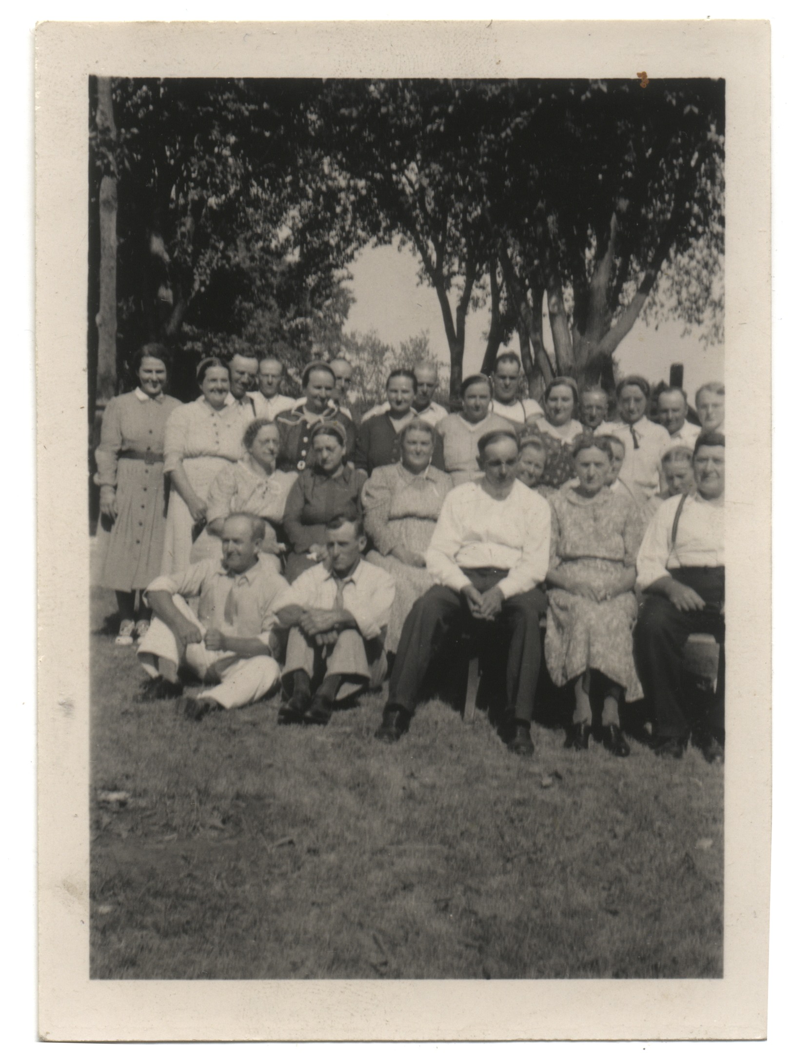 Joseph C. Swartzendruber Reunion. 1920. Katie Swartzendruber Reschly 2nd row from front, second from left, dark dress.