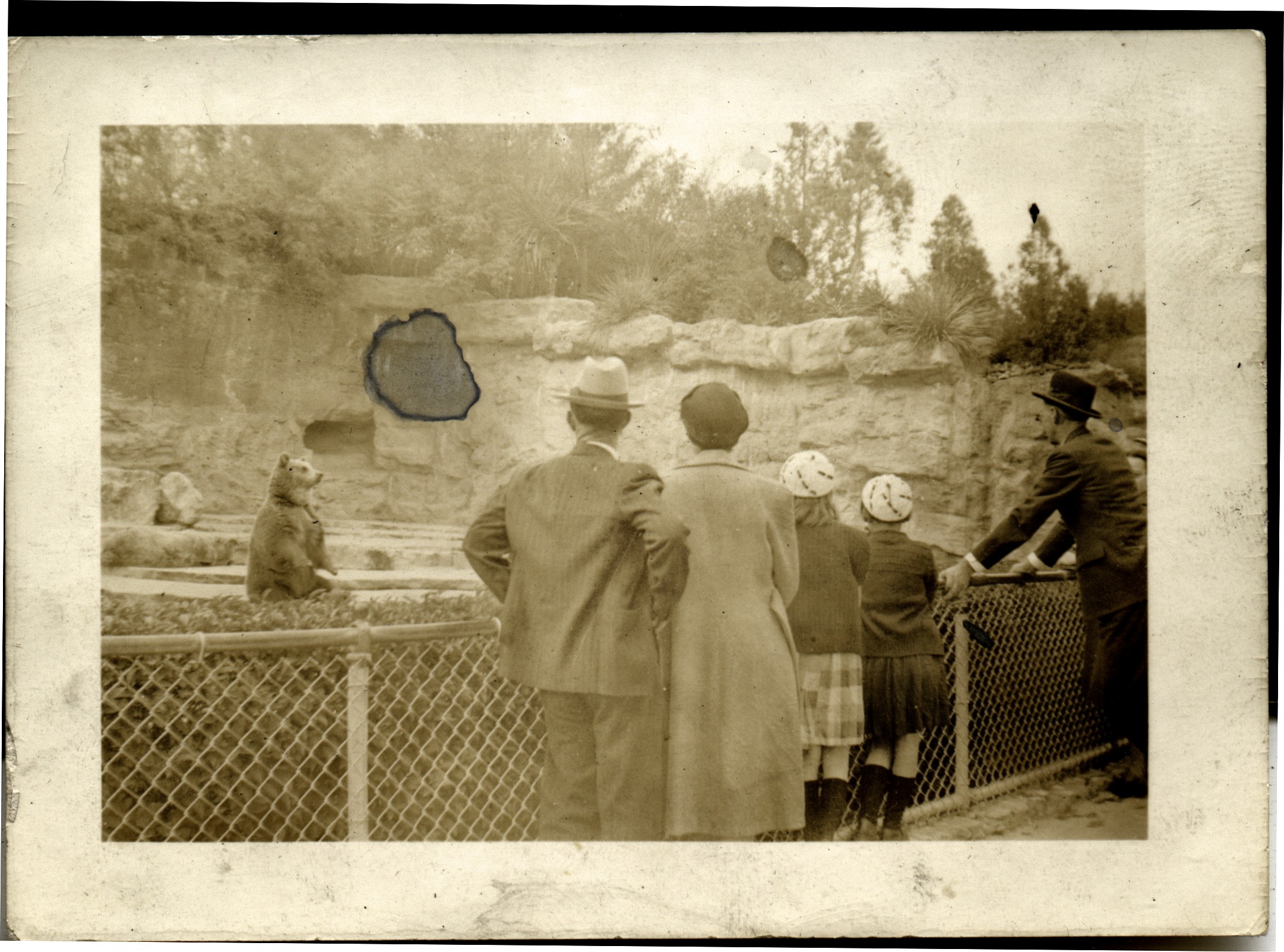 Oliver & Verda Hamilton, Treva, Lola Von, & Harold Bontrager and bears at the zoo. 1938c