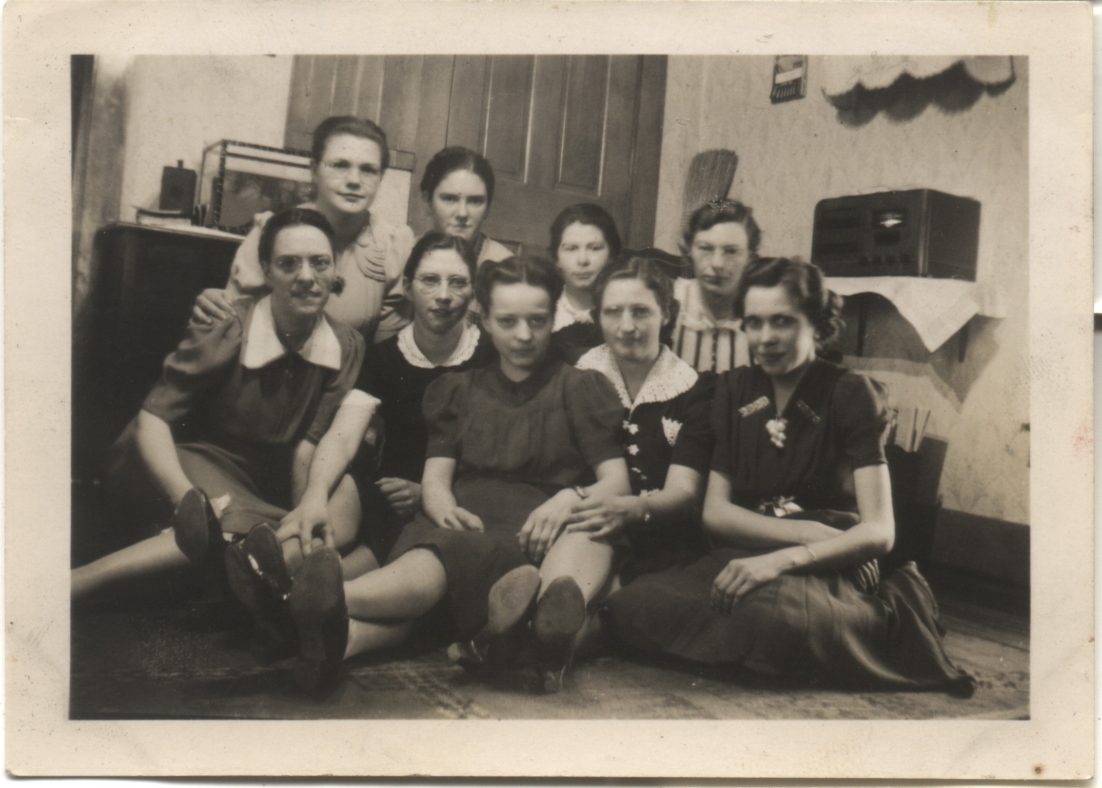 | 'Ethel's birthday suprise. Where's Ethel?' Back: Lucille Boese, Alice Reschly, Ruth Miller, Edith Steckly [Boese][Nebr] Front: Ruth Reschly, Margarite Roth, Edna Reschly, Francis Alliman, Berdine Beckler [Nebr] | 0480.jpg | Order | |