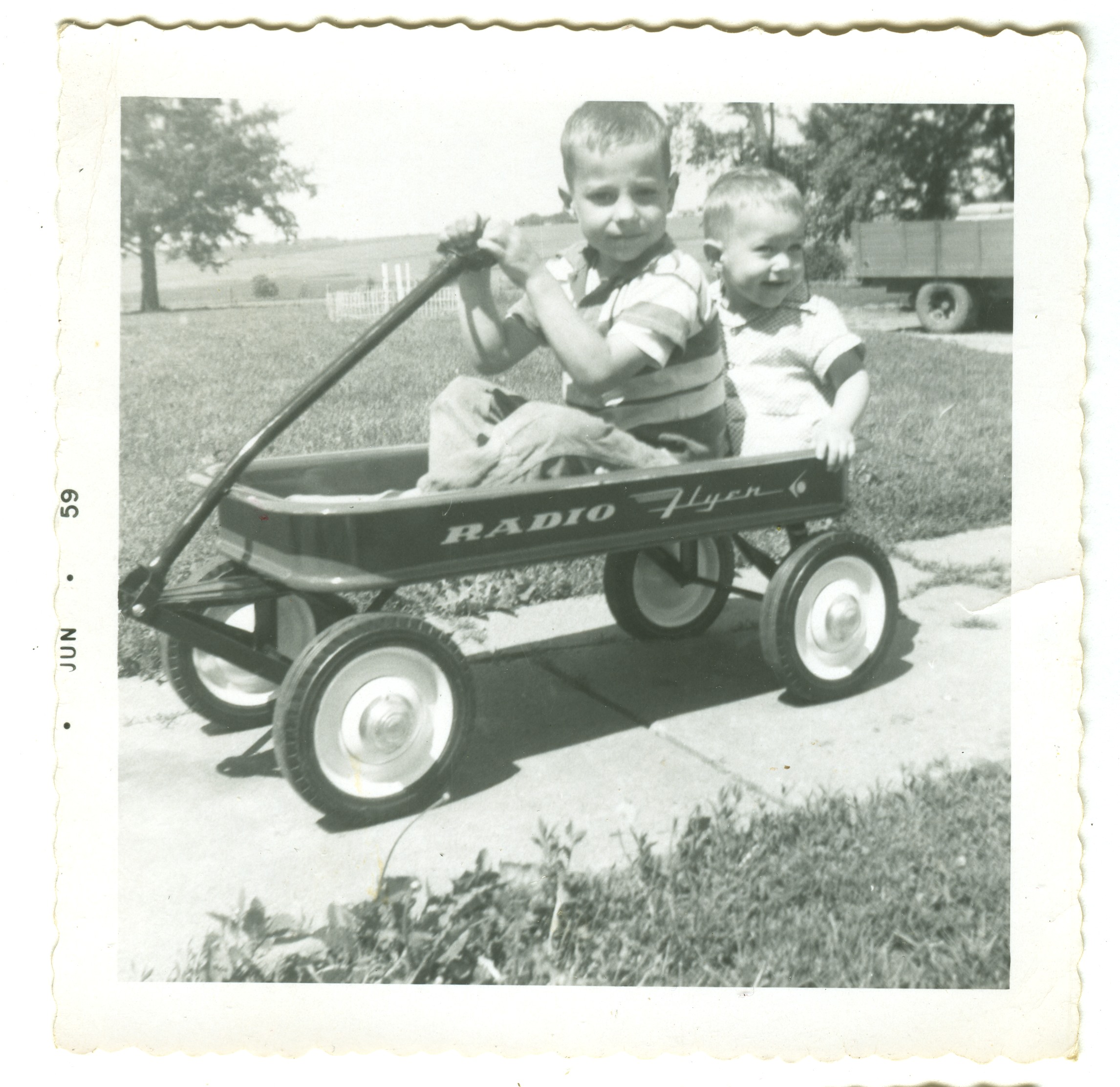 Reynolds & Lamar Roth in wagon. 1959