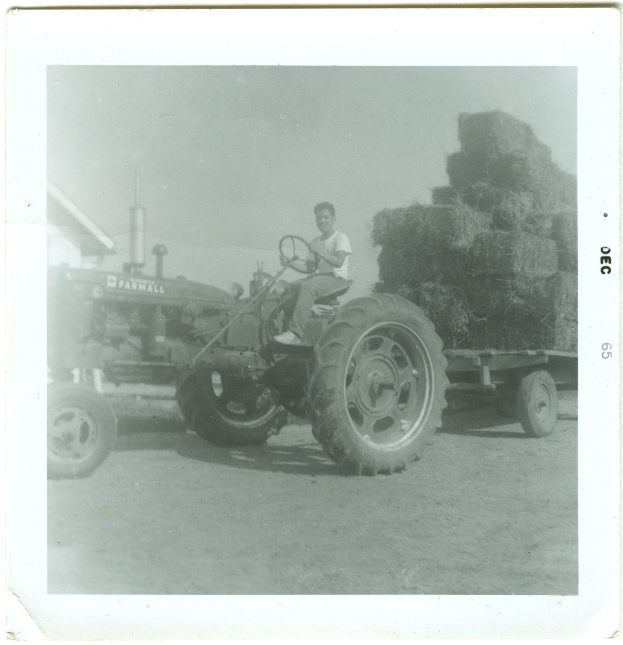 Danny Trevino on the C Farmall pulling a load of hay. 1965