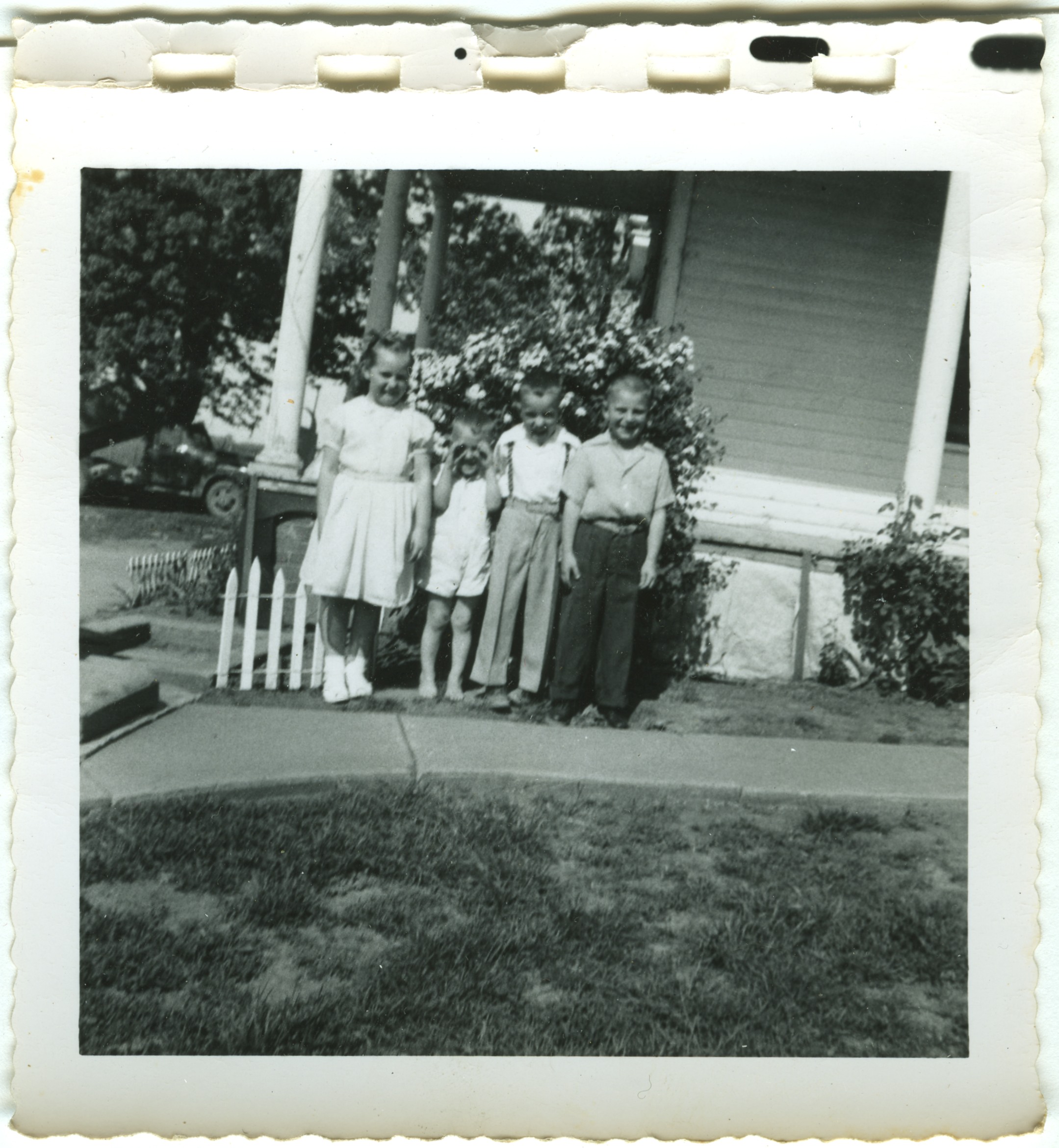 Rozella Beachy, Lynn & Larry Roth, Roy Beachy. 1955 Taken at Beachy's house.
