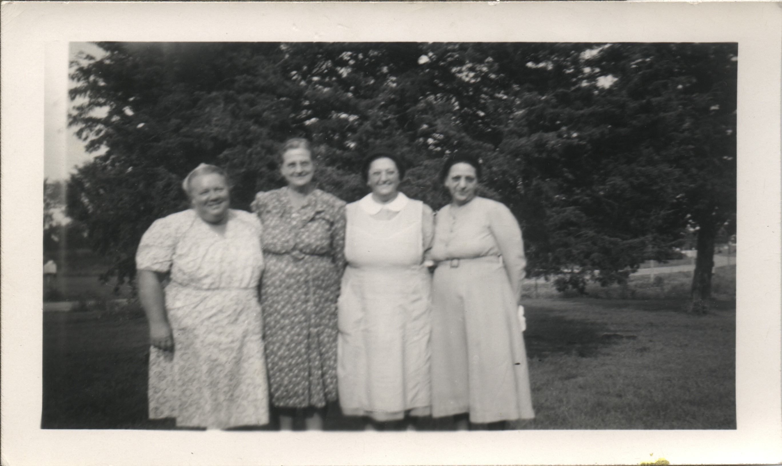 Velma [Edgar's wife] Swartzendruber, Alta Gingerich, Eliza Ross, Katie Reschly 1948c