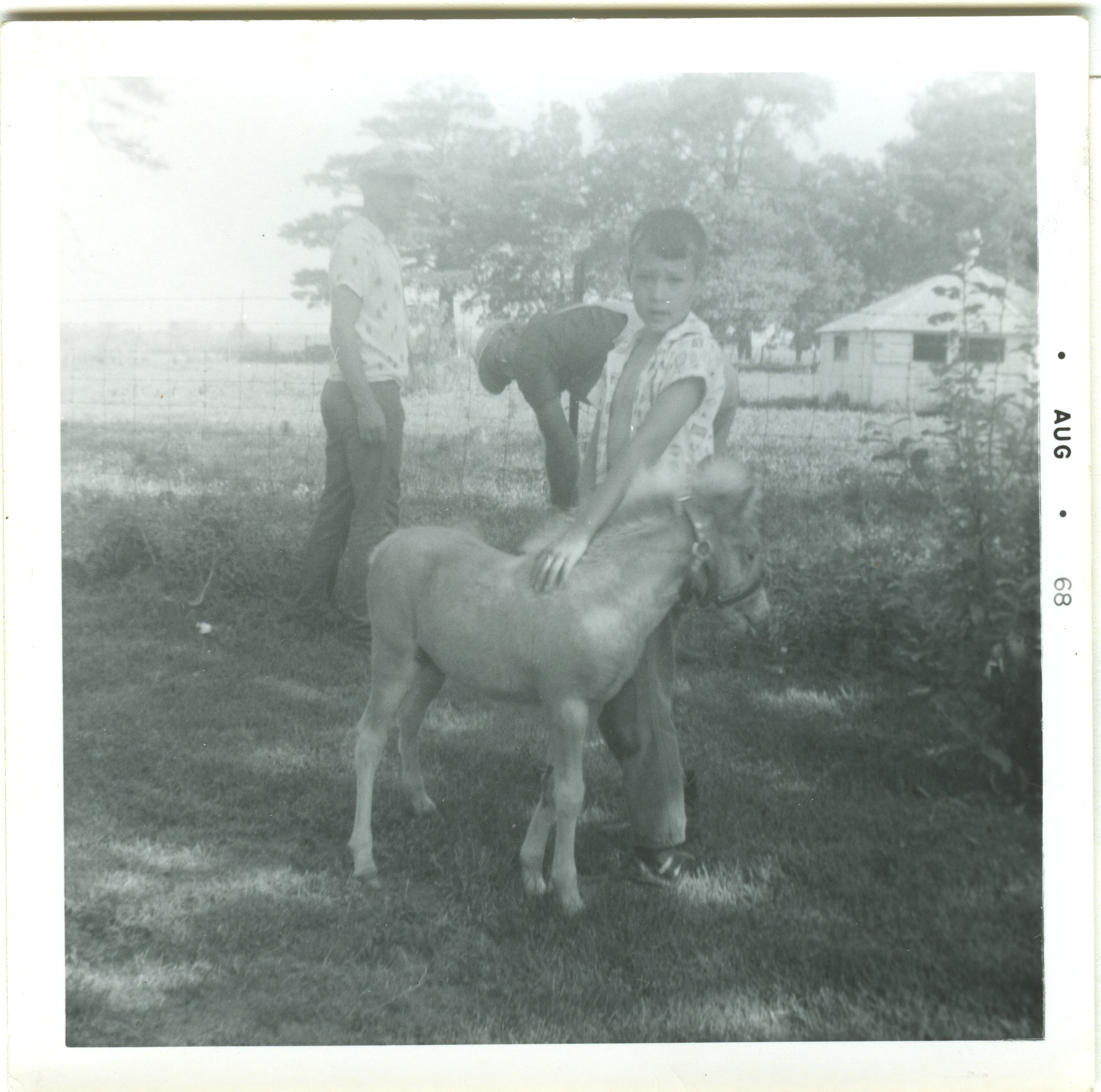 Lamar Roth with colt. Fred & Ray Roth fixing fence in background. 1968 see also: #0987, #0988