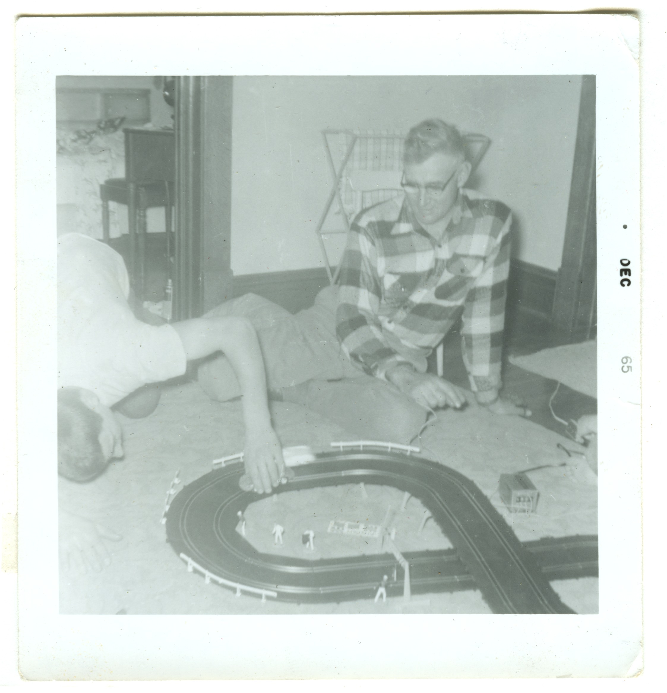 Ray & Reynolds Roth with car racetrack. 1965
