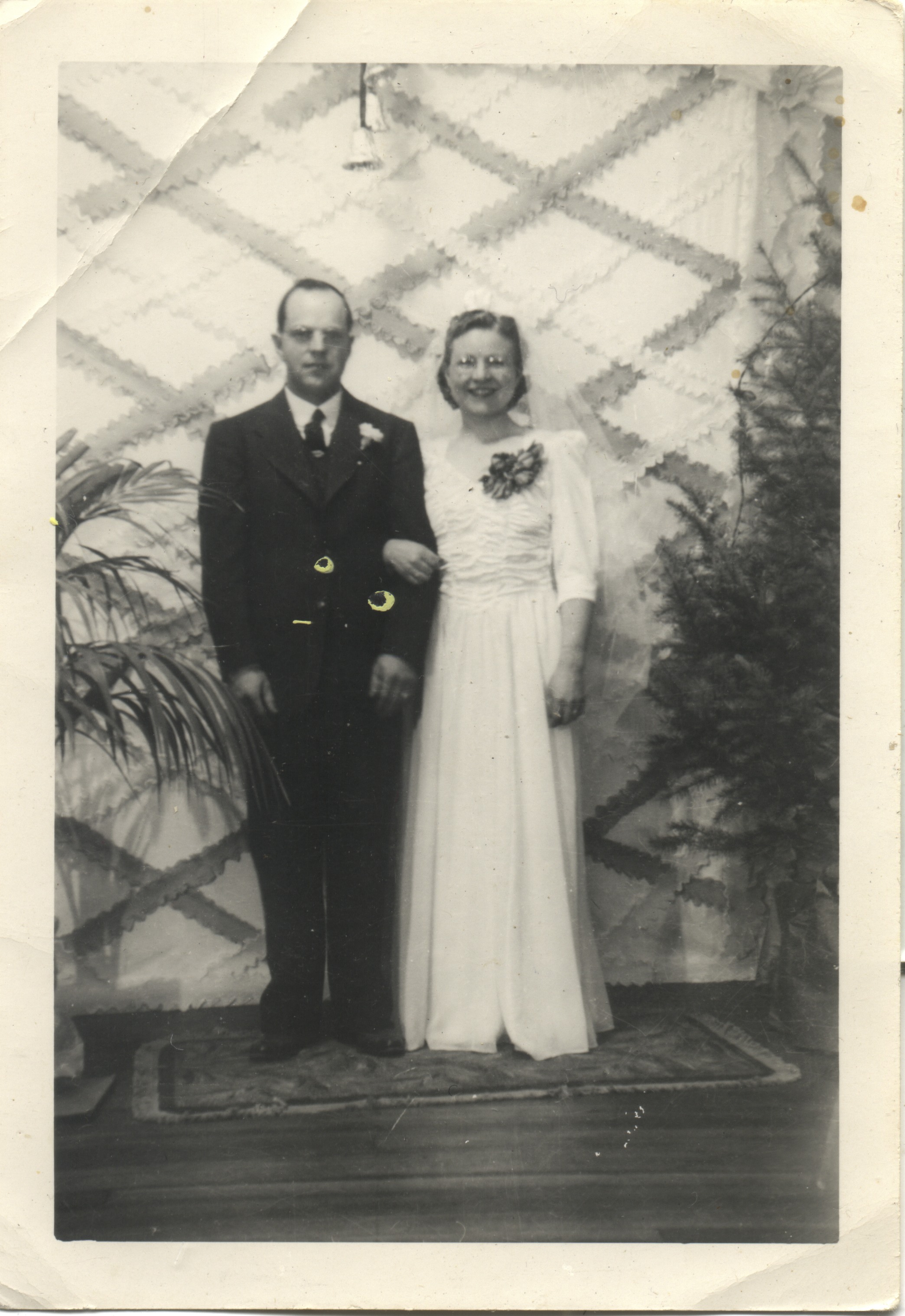 Harold & Lollabelle Reschly m. 12/25/1942 Irene Pankoke was married in the same wedding dress.