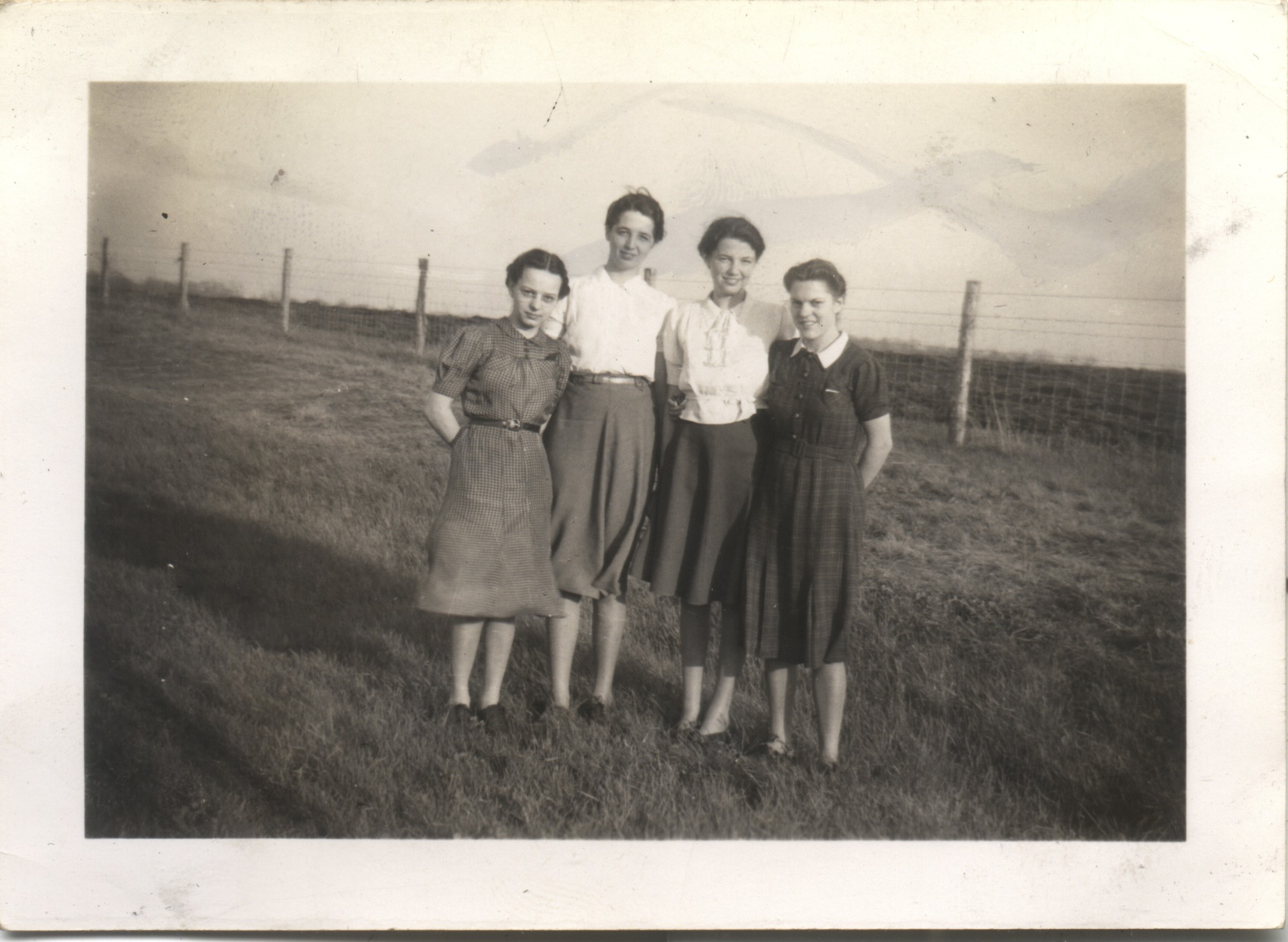 ''On our trip to Peoria' Edna Reschly, Alice & Aldine Eichelberger, Irene Reschly. 1940c see #0138