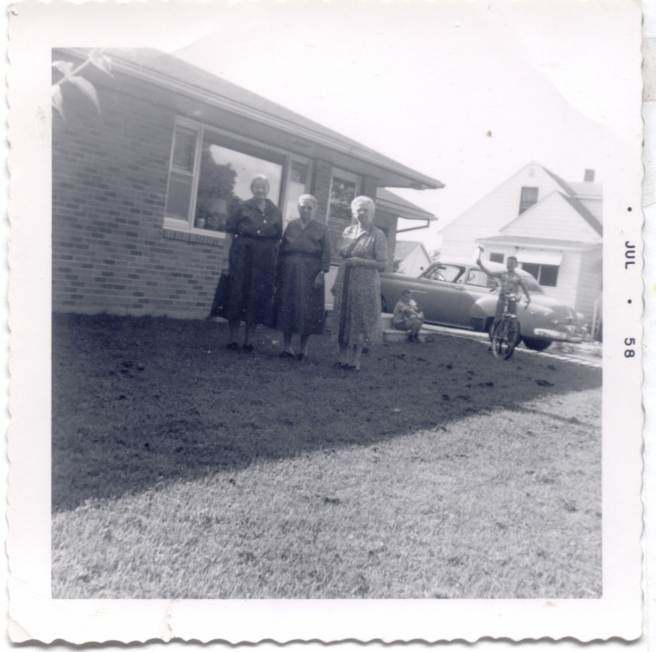 Swartzendruber Sisters. Alta Gingerich, Katie Reschly, Ruth Schrock. 1958 in Olds, IA
