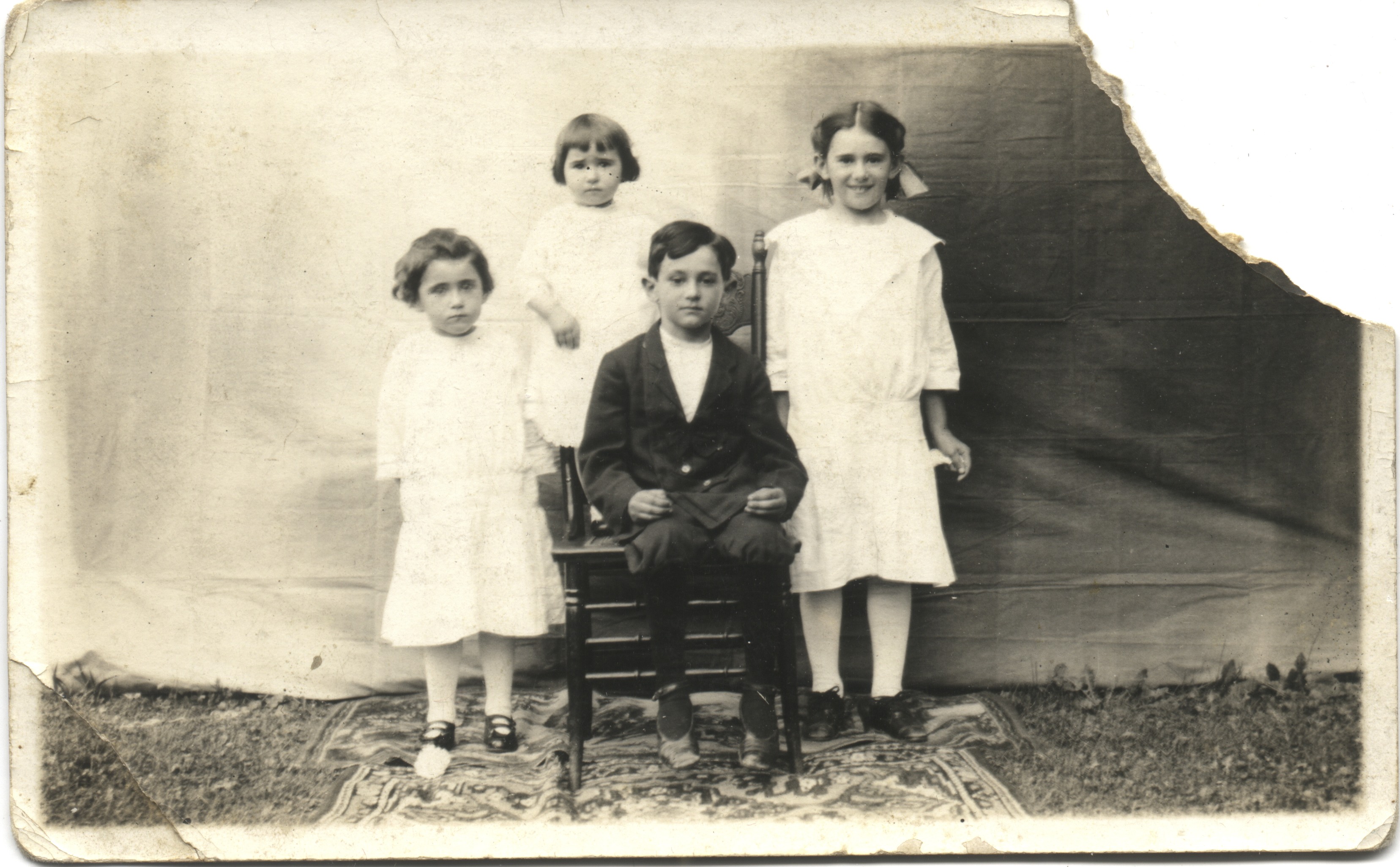 rt to lft: Anna, Rachel, Urban, Ina Roth children of Nicholas & Esta Reschly Roth 1921c