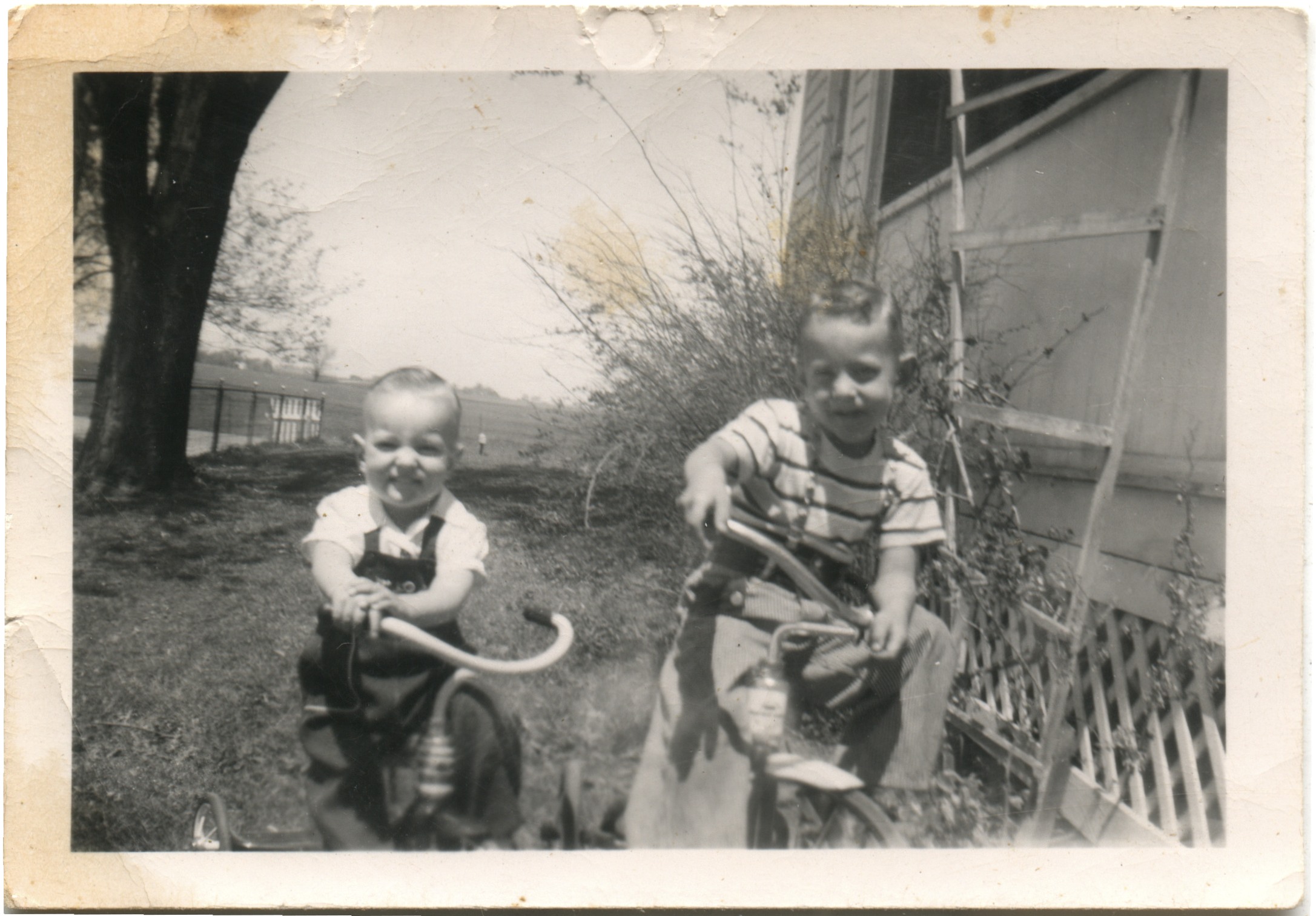 Fred & Larry Roth on tricycles. 1950c