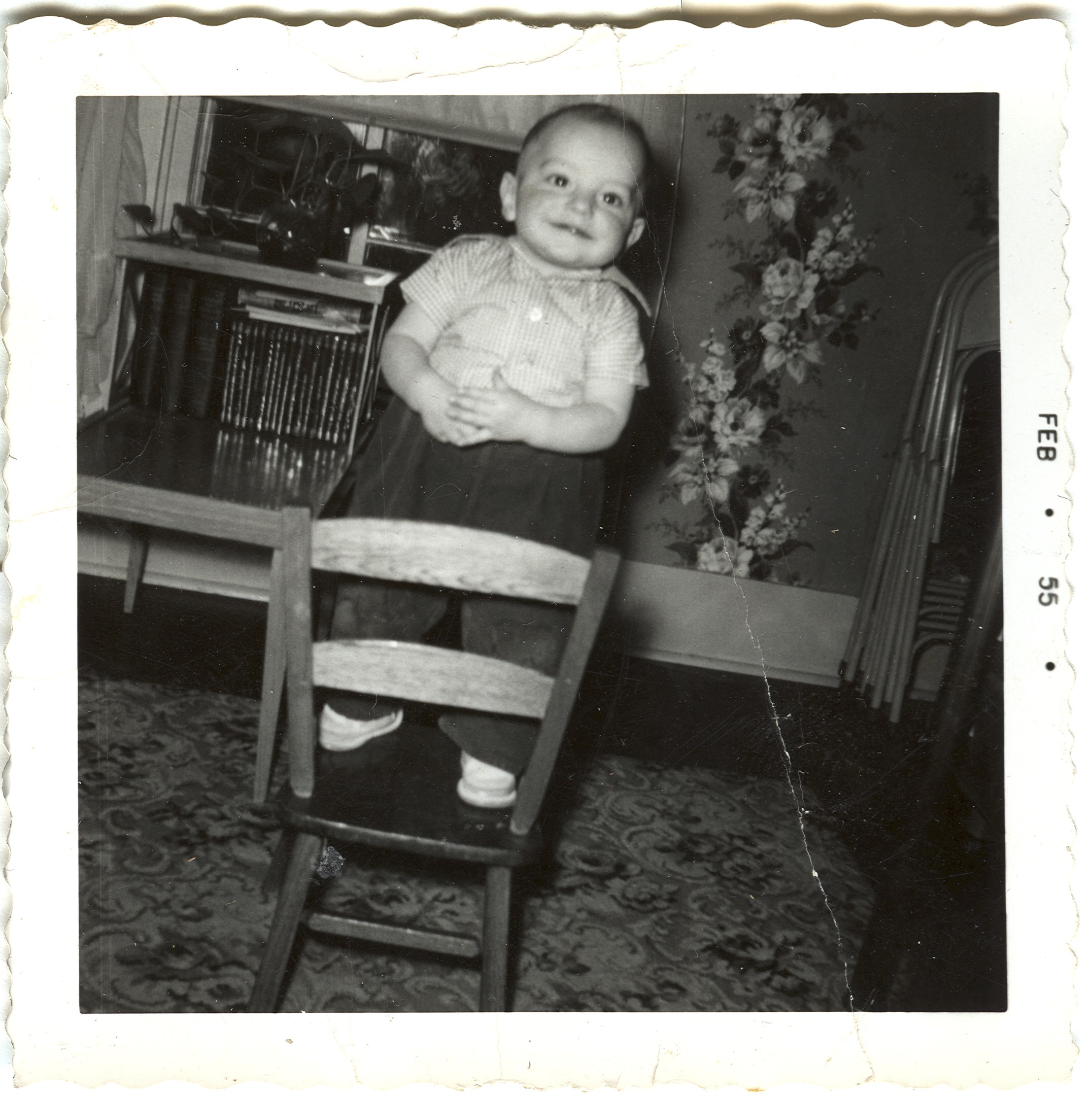 Reynolds Roth standing on chair. Feb 1955