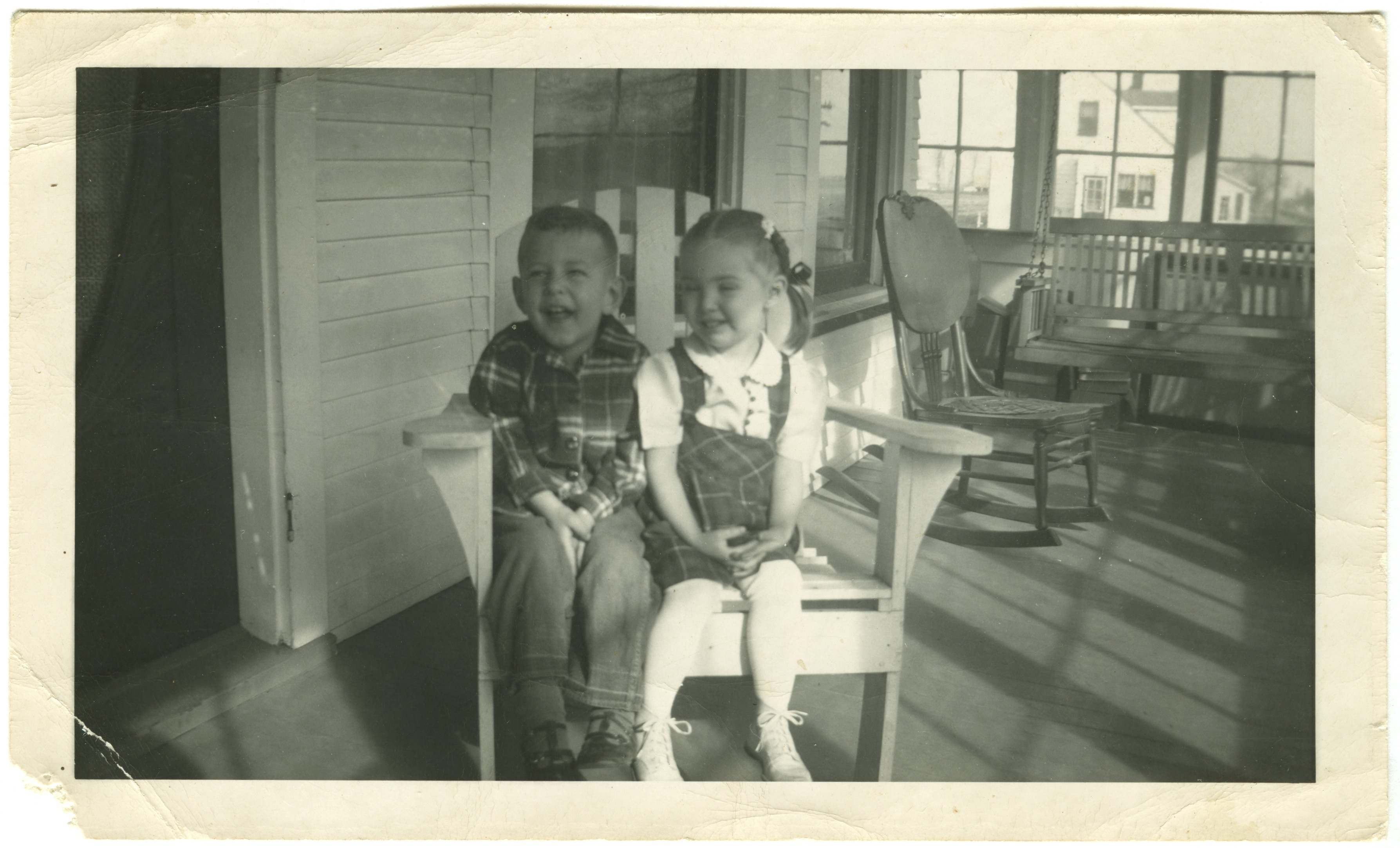 Fred Roth & Alice Kauffman 1949 on porch in Olds, IA