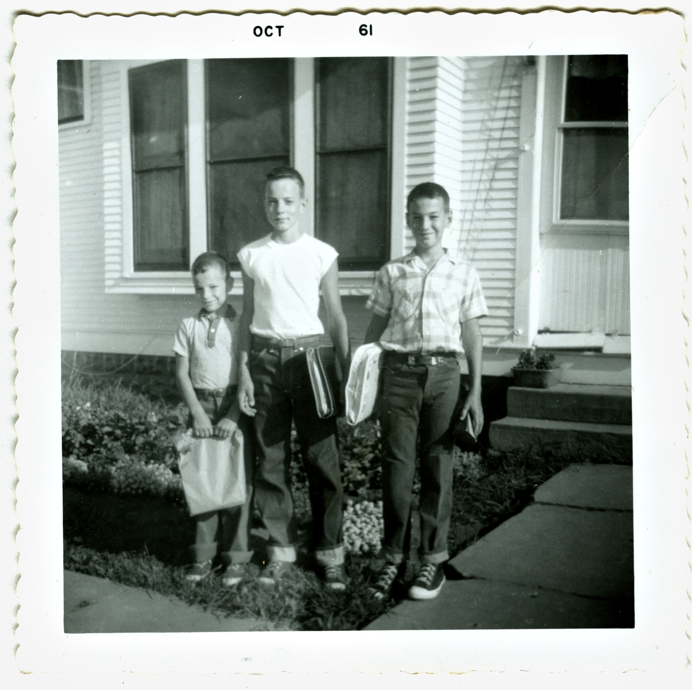 Reynolds, Larry, Lynn Roth off to school. 1961
