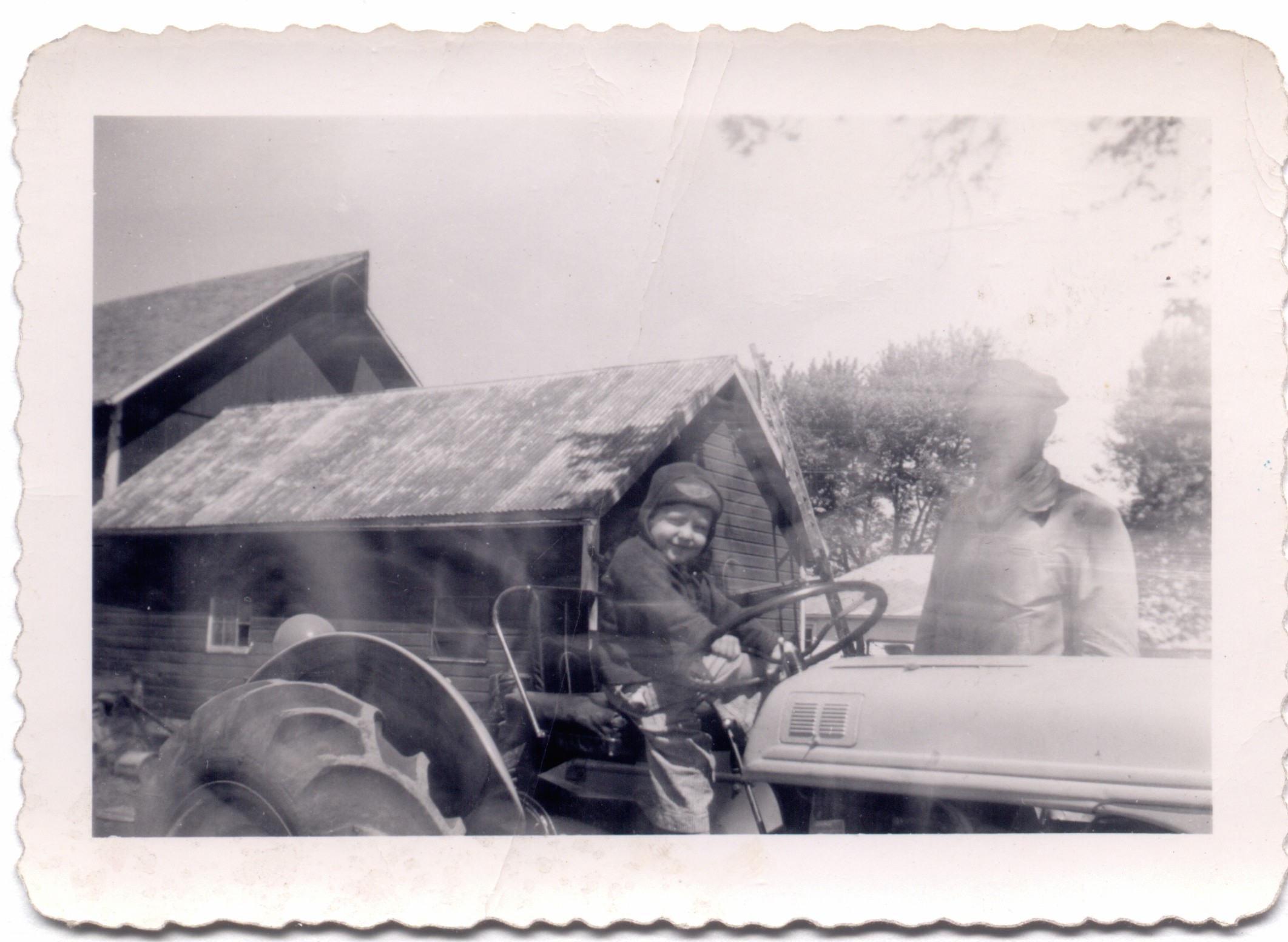 Fred Roth on a tractor with Ray Roth. 1949c