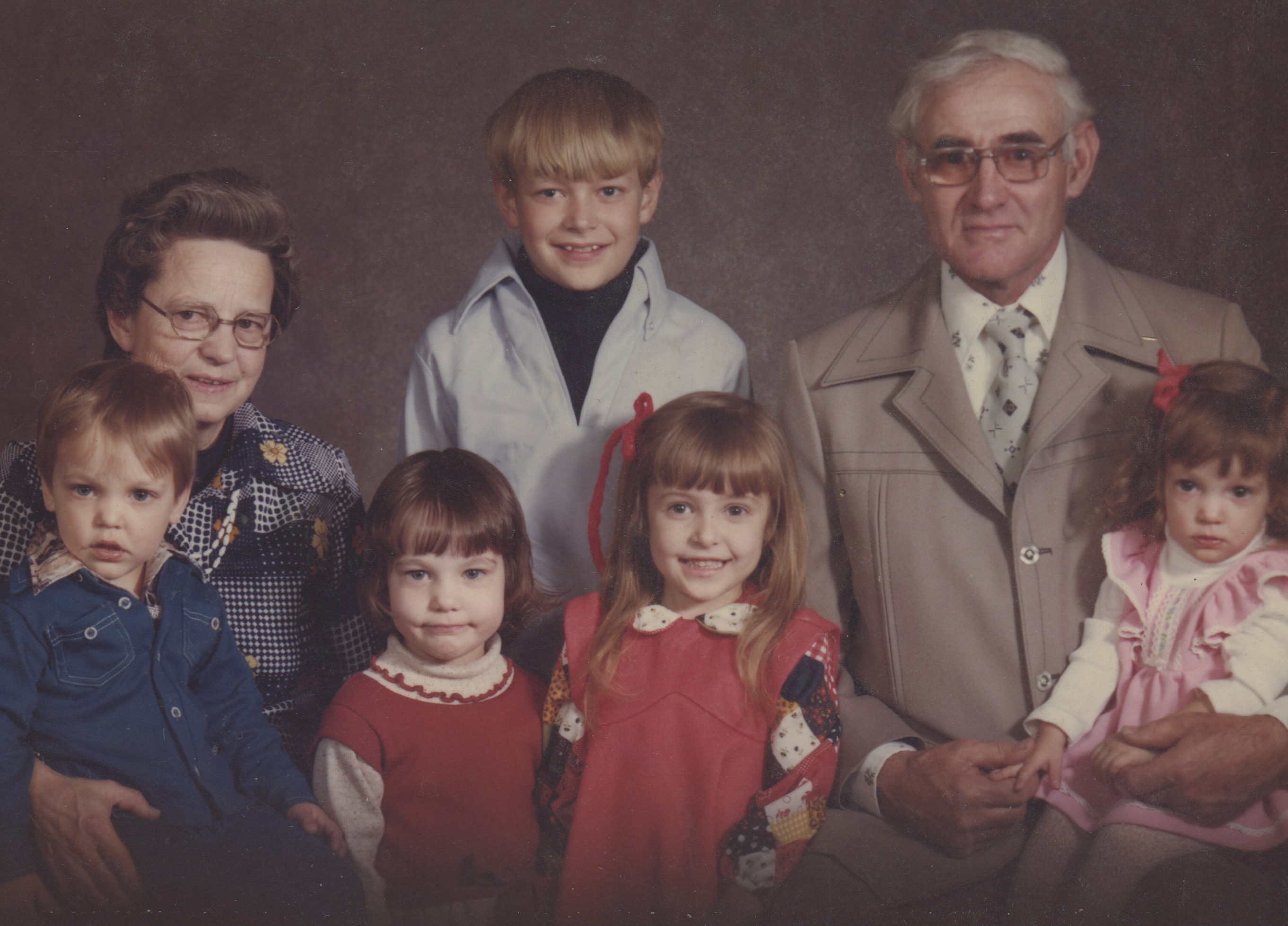 Ray & Edna Roth with Grandchildren. Jeff, Edna, Julie, Kevin, Tina, Ray, Jennifer Roth 1974